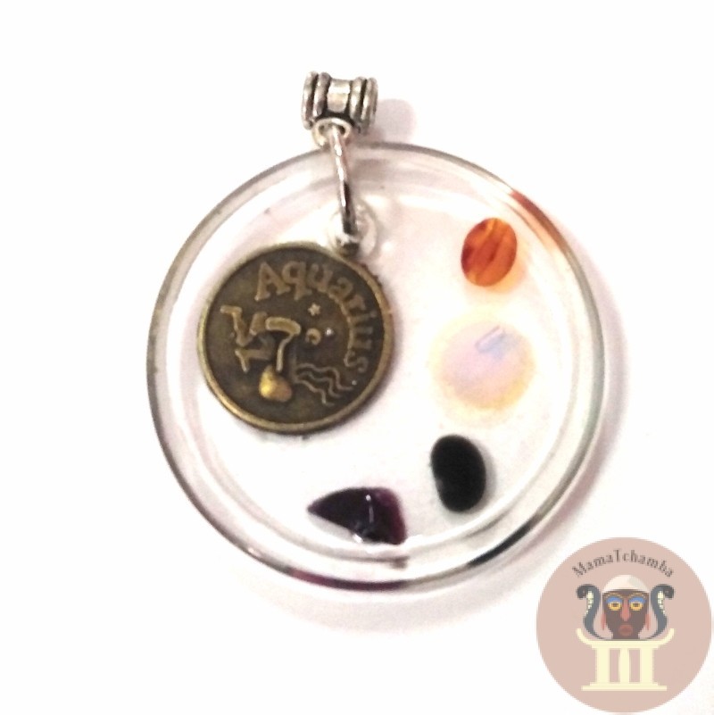 Amuleto de horóscopo acuario , contiene piedra luna , ambar , azabache y amatista.