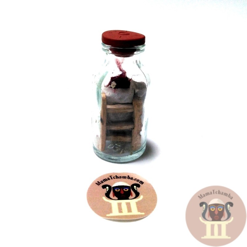 Esta botella es de origen Africano (BENIN) , elaborada según tradiciones Africanas por el maestro YEKPON HOUNSOU LUCIEN , esta botella se rellena con aceite perfumado six flowers el cual usara usted para hacer sus peticiones , la puede usar para cualquier petición de amor , salud , trabajo , negocios , etc..