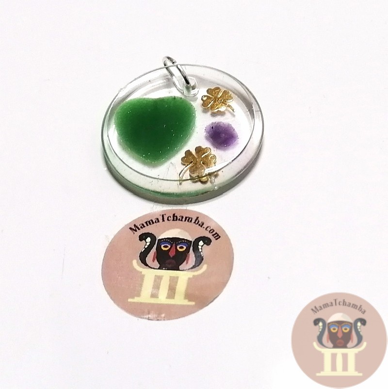 Colgante de Resina trébol corazón de ágata verde y amatista