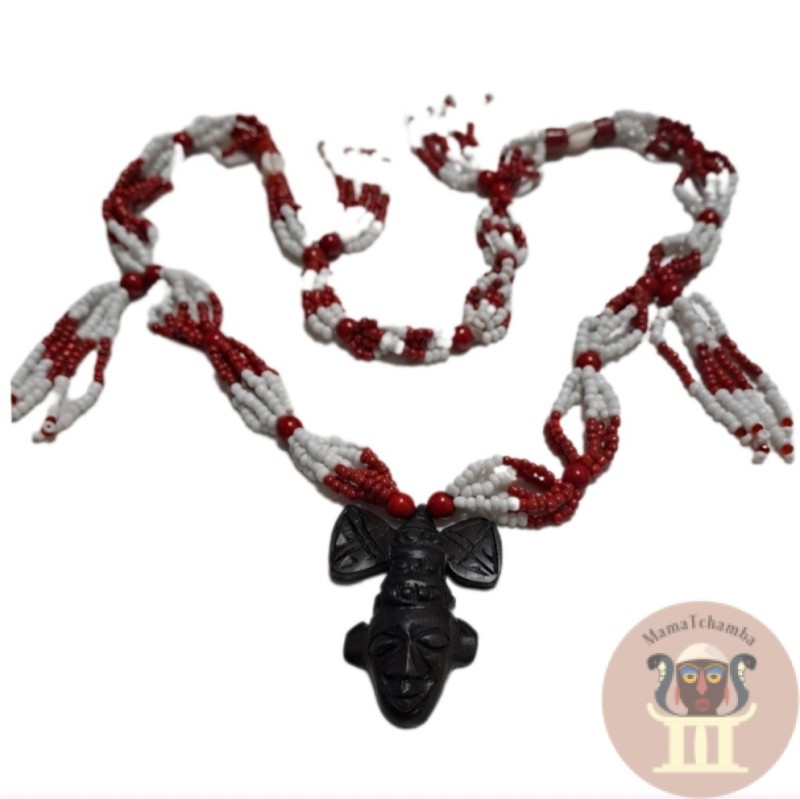collar mazo de shango 53cm elaborado artesanalmente con cuentas rojas y blancas de la mejor calidad,y con colgante de shango tallado en madera de ebano