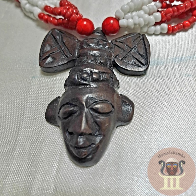 collar mazo de shango con colgante tallado en madera de ebano , 53cm