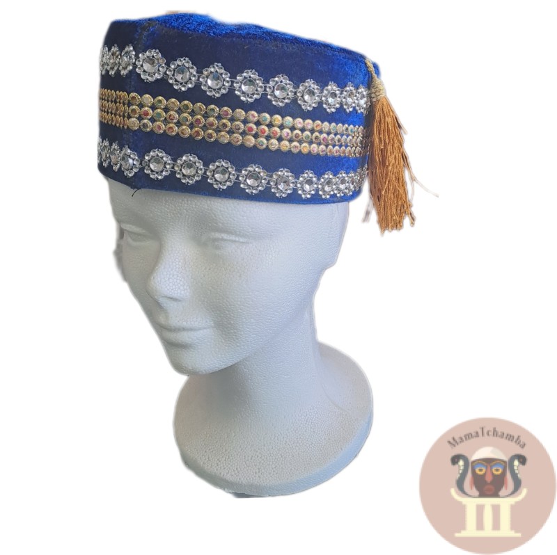 GORRO O KUFI TRADICIONAL AFRICANO COLOR AZUL ELABORADO Y DECORADO ARTESANALMENTE EN AFRICA