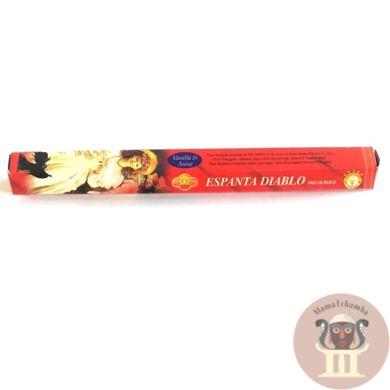 Con su aroma a Vainilla y Anís ,Trata de alejar el diablo de su interior. Los malos pensamientos distraen su mente y traen malas consecuencias. Este incienso mistico le ayuda a relajarse y alejar los pensamientos negativos
