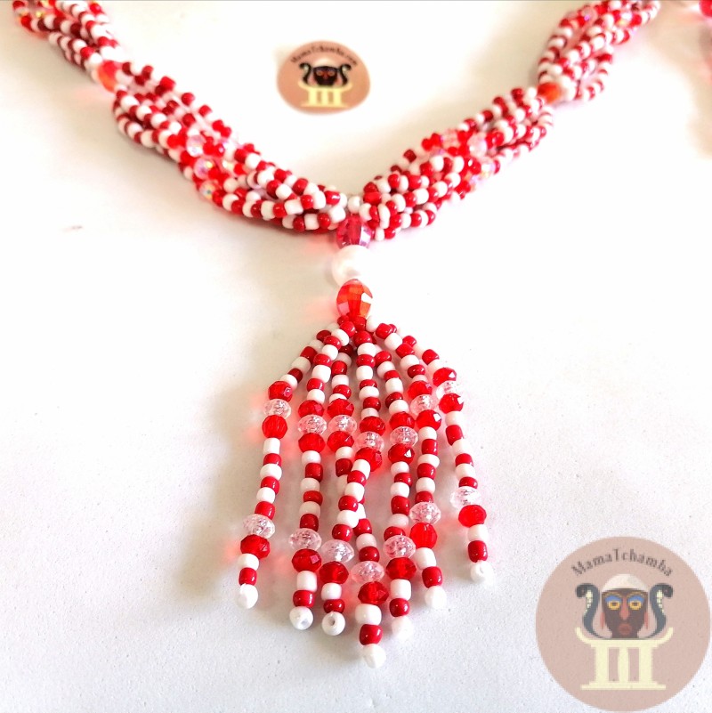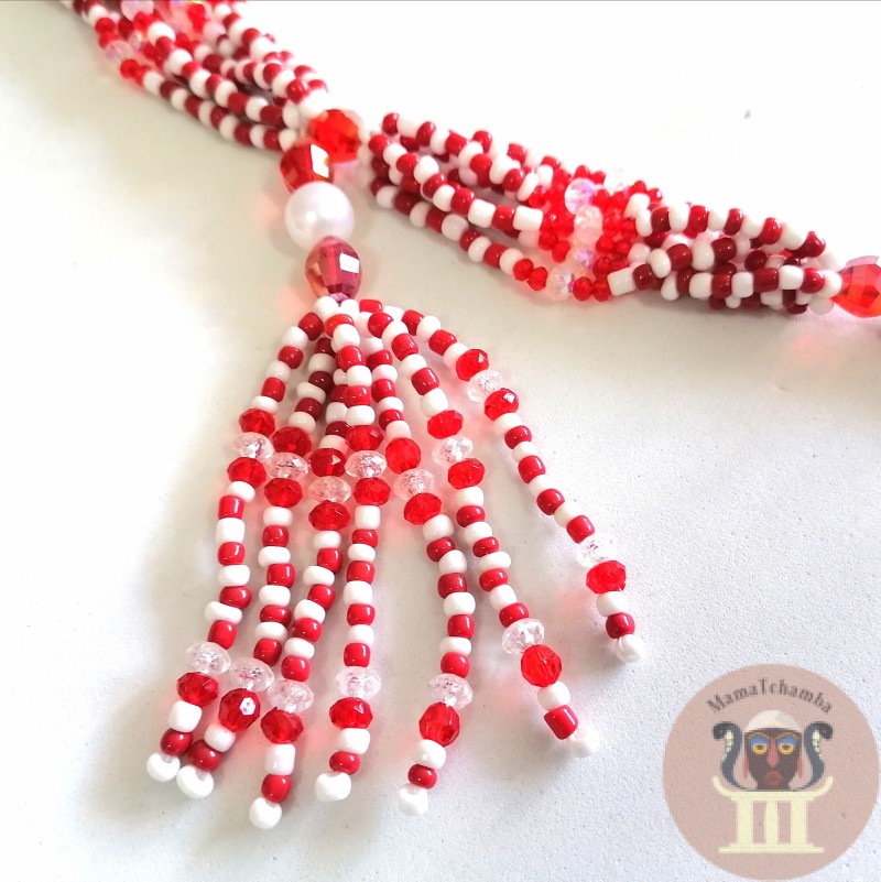 Mazo de Shango de 70cm,elaborado con cuencas de sworoskis en rojo,cuencas blancas y rojas de la mejor calidad