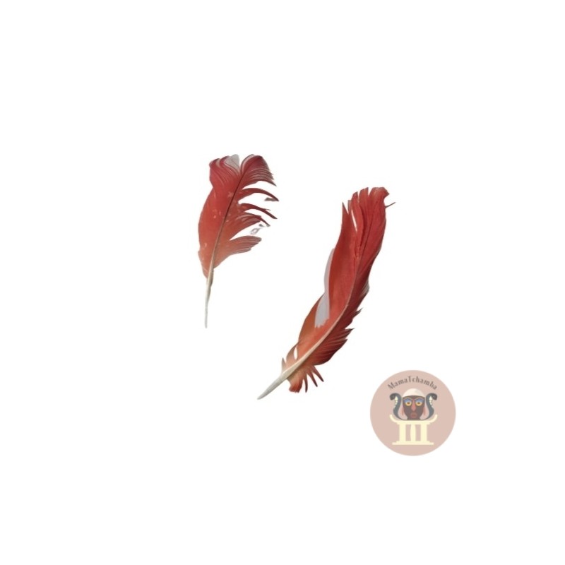 Estas plumas son muy raras porque la mayoría de las plumas de esta ave es de color gris y sólo la zona de la cola es de color rojo brillante.