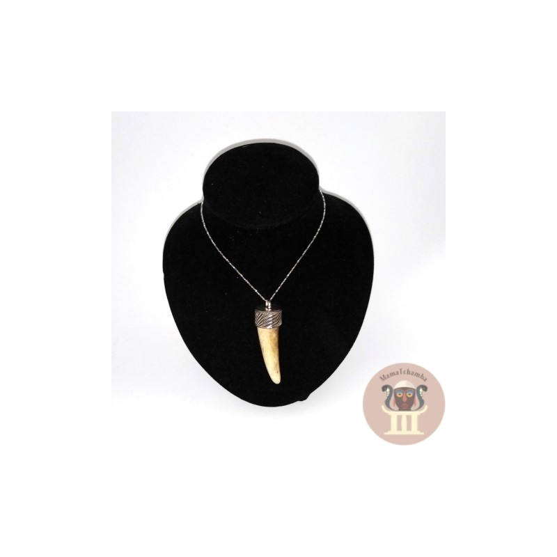 Este amuleto esta hecho en Africa. Este amuleto se lleva colgado al cuello para protegerse y traer la suerte.