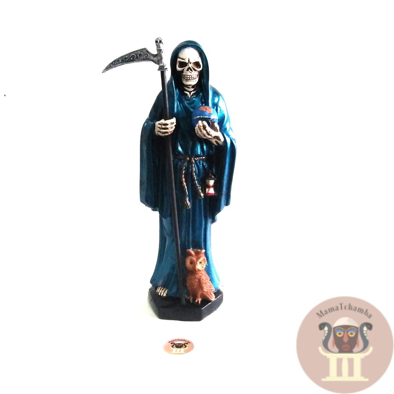 Santa Muerte Azul: Representa la Sabiduria El Entendimiento Es recomendada para los estudiantes para tener una mente clara y enfocada.