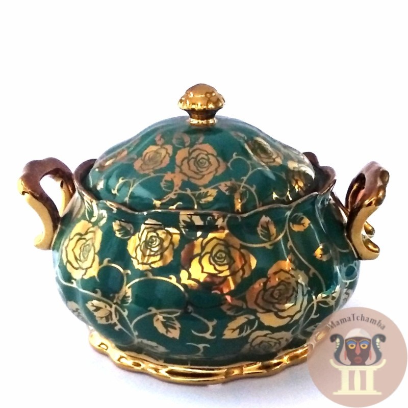 Sopera modelo PERA fabricada en porcelana y decorada con cristales en forma de diamantes.