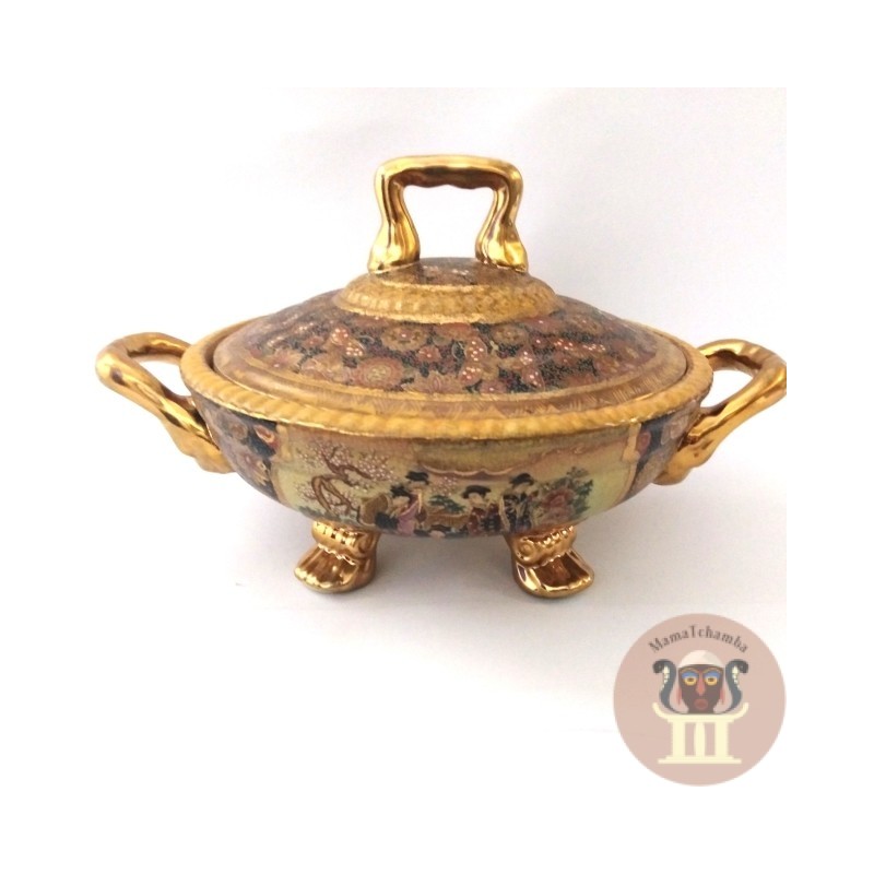 Sopera Obba porcelana labraba ,esmalte mate ,brillo natural detalles acabado en oro