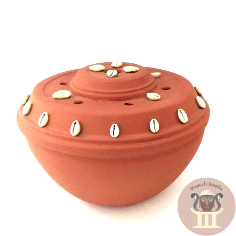 Yarara Babalu Aye fabricada en barro cocido,con 8 agujeros,decorada con caracoles